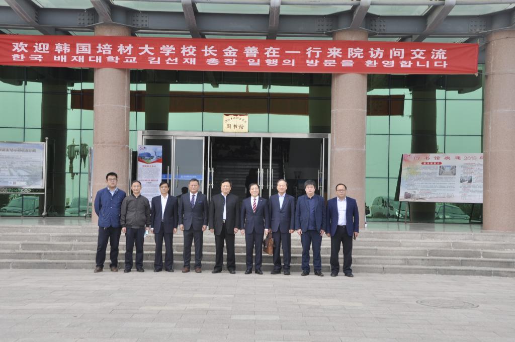 11月6日上午,韩国培材大学校长金善在一行5人来我院洽谈合作交流、签署共建韩国语教育中心协议并举行揭牌仪式。党委书记肖明胜、副院长王金明出席了揭牌仪式,应用外语系和外事办相关人员参加了此次活动。