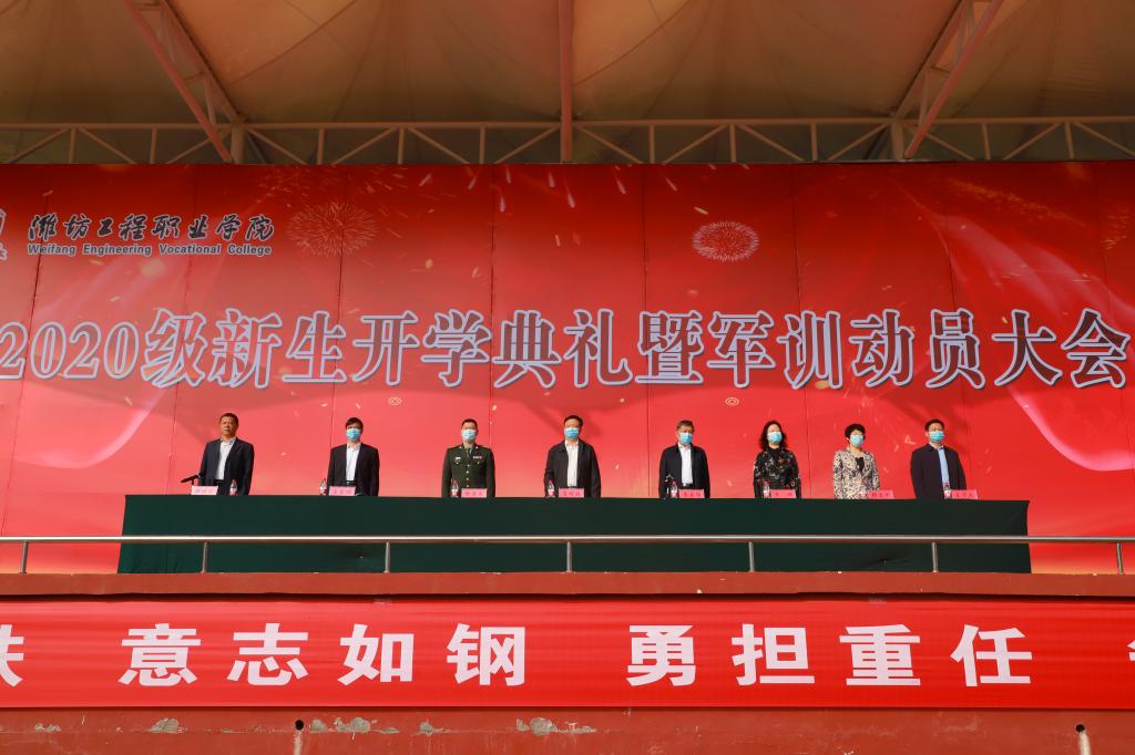 10月12日上午,我院在田径场举行2020级新生开学典礼暨军训动员大会。党委书记肖明胜、院长高立伯、青州市人民武装部政委徐考成、党委副书记李琳、副院长王金明、纪委书记那菊华、副院长韩振华、副院长王守庆出席典礼。2020级全体新生、各系(院)和处室负责人、辅导员参加开学典礼。
