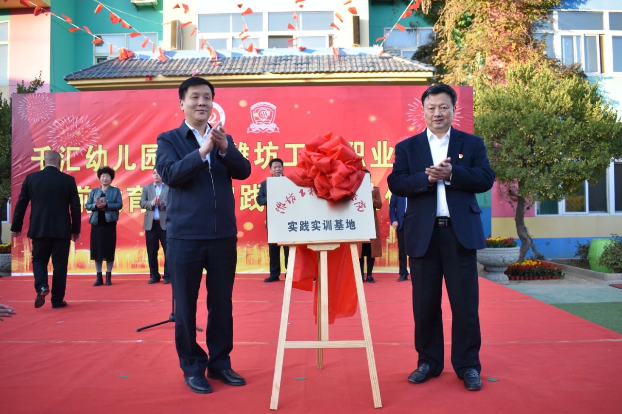 仪式上,郝炎磊对千汇幼儿园挂牌表示祝贺,对我院对当地学前教育的支持表示感谢。教师教育学院负责同志简要介绍了我院的基本情况,并表示今后将从教师培训、学生实习、教科研等方面进行深入交流,为推动区域教育发展做出积极贡献。肖明胜和庞德贞为潍坊工程职业学院幼师实习基地揭牌。