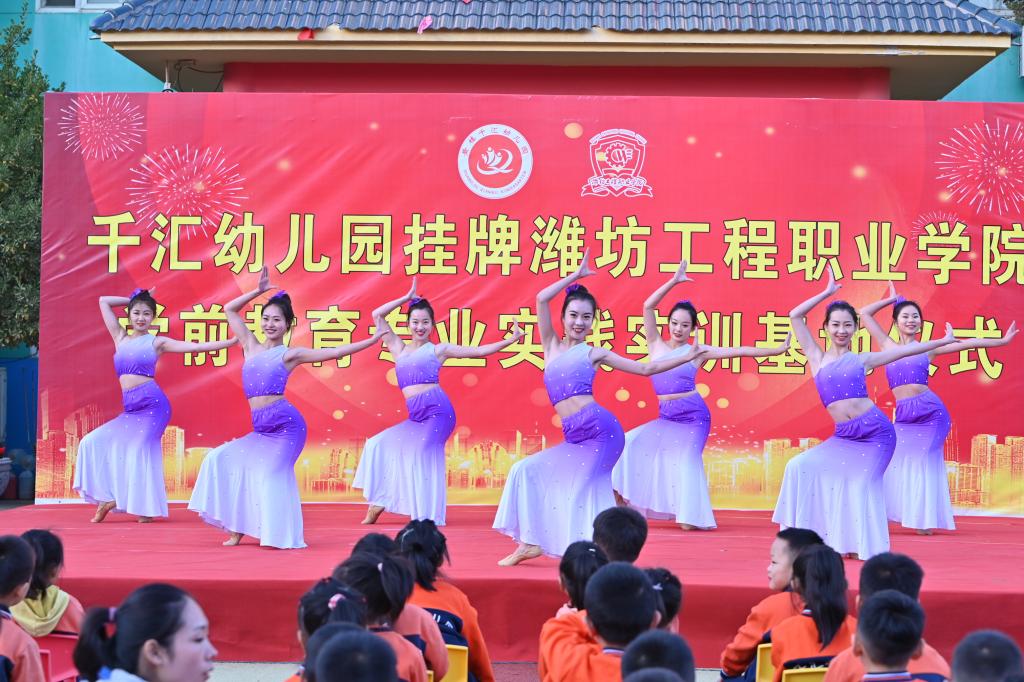 活动中,与会人员参观了幼儿园,共同观看了学前教育专业学生和千汇幼儿园师生的演出