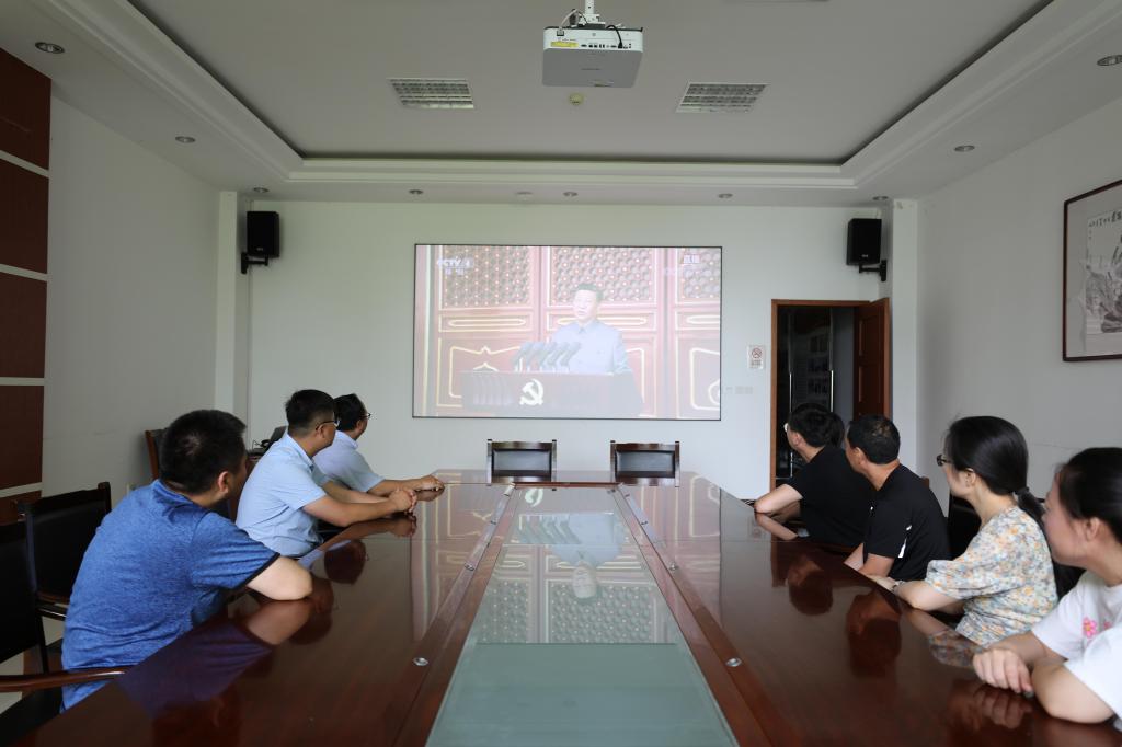 庆祝中国共产党成立100周年大会今天上午8时在北京天安门广场隆重举行,中共中央总书记、国家主席、中央军委主席习近平发表重要讲话。学院党委高度重视、周密安排,党政办公室下发收听收看通知,在学术报告厅、220会议室、图书馆四楼大厅、各系院会议室等场所直播大会,组织师生集中收听收看大会实况,认真聆听了习近平总书记的重要讲话。学院党委班子成员在220会议室集体收看了会议直播,各党总支(支部)结合自身实际,组织师生收看了会议直播。