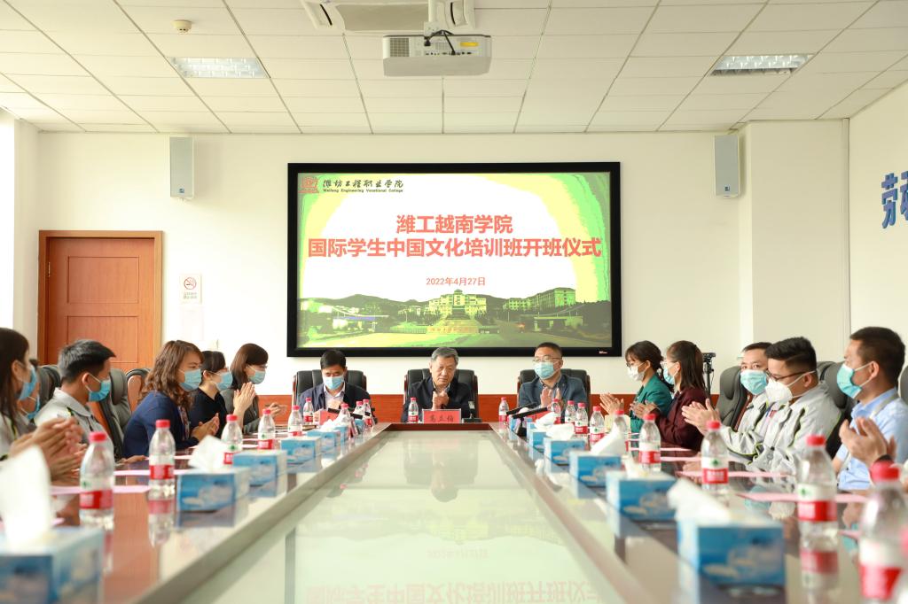 4月27日,我院在海岱阁220会议室举办潍工越南学院国际学生中国文化培训班开班仪式。院长高立伯出席,副院长王金明、歌尔工学院项目负责人李廷超出席会议,国际交流学院相关负责人、带队教师、班主任及22名越南籍学生参加开班仪式。
