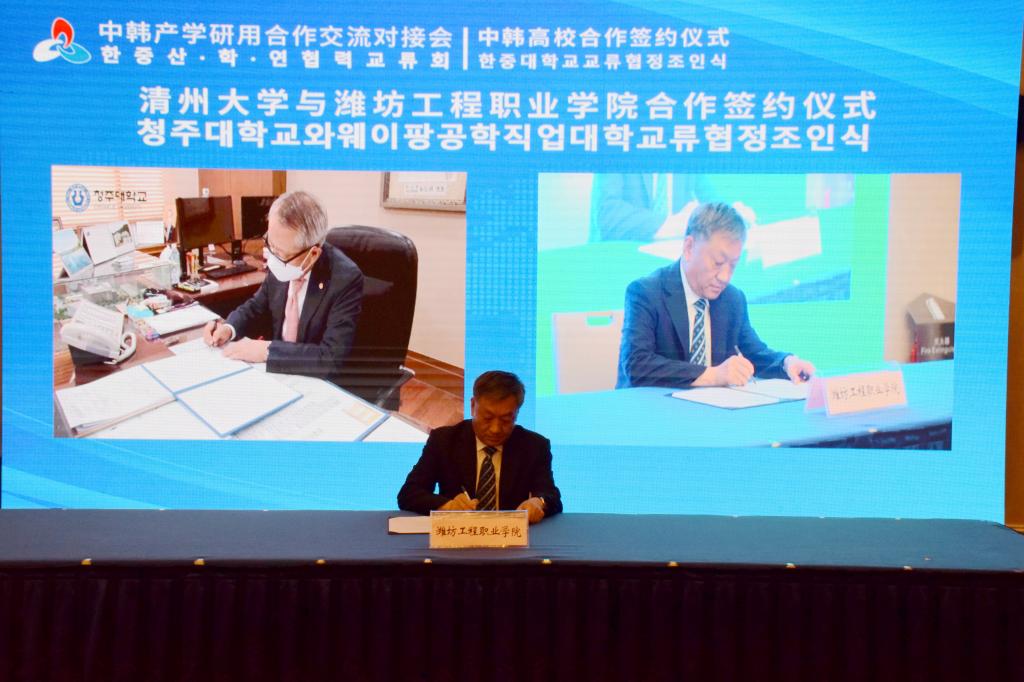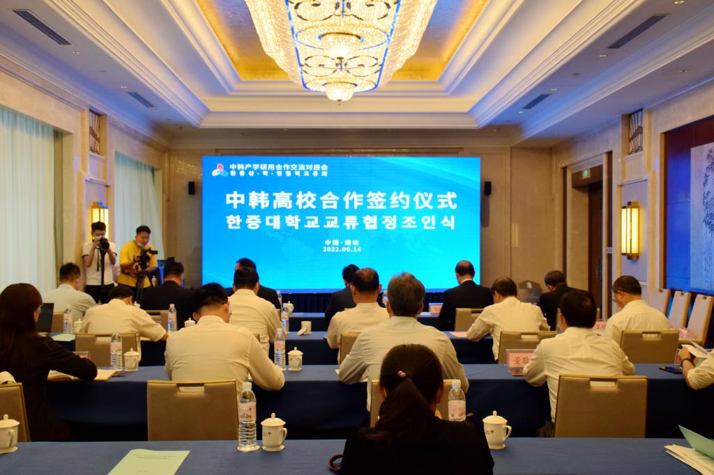 6月14日下午,中韩产学研用合作交流对接会“中韩高校合作签约仪式”在潍坊举行。我院院长高立伯、副院长王金明、韩国昌原大学校长李昊英、清州大学校长车千洙出席会议,国际交流学院相关负责人参加会议。