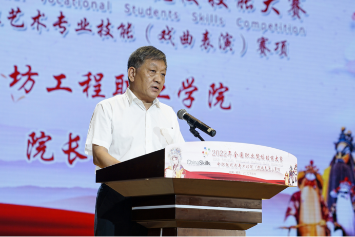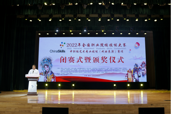 8月20日上午9:00,2022年全国职业院校技能大赛中职组艺术专业技能(戏曲表演)赛项闭赛式暨颁奖典礼在潍坊市工人文化宫举行。赛项由教育部、天津市人民政府、山东省人民政府、国家发展和改革委员会等36个部委单位主办,山东省教育厅、潍坊市人民政府承办,潍坊工程职业学院协办。