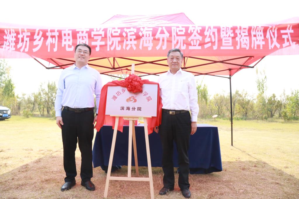 9月28日上午,潍坊乡村电商学院滨海分院签约暨揭牌仪式在潍坊滨海经济技术开发区举行。院长高立伯与滨海经济技术开发区党工委委员、管委会副主任孙鹏为分院揭牌。副院长王金明与山东乐道农业科技有限公司董事长杨湘泉签署合作协议。滨海区文体旅游产业发展中心、经济管理系相关负责人与企业代表参加仪式。揭牌仪式由滨海区旅游度假区(文体旅产业发展中心)党委书记冯月玲主持。