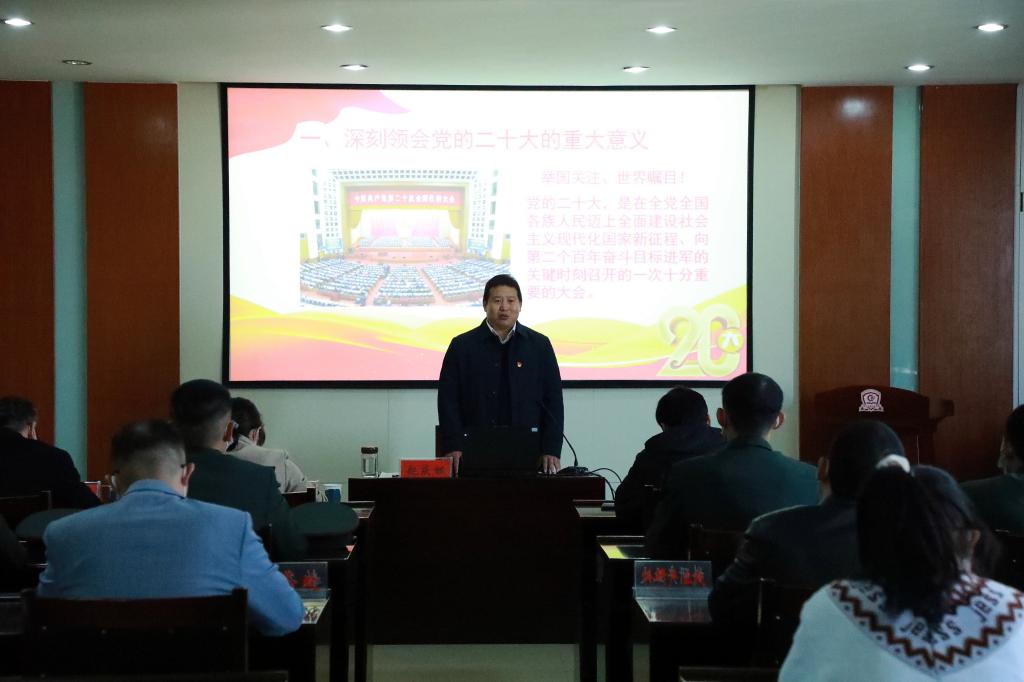 11月25日下午,党委委员、统战部部长、党政办公室主任赵庆松到分管部门和二级学院宣讲党的二十大精神。