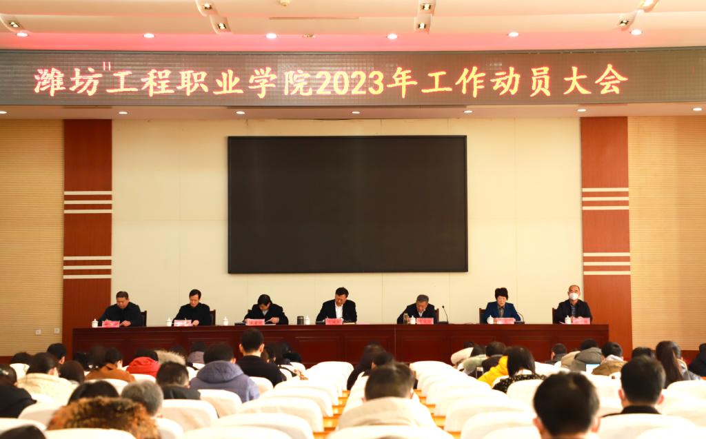 春风擂鼓,号角催行。2月13日上午,潍坊工程职业学院召开2023年工作动员大会,党委书记肖明胜出席会议并作动员讲话,院长高立伯对2022年的工作进行系统总结,并部署2023年重点任务。党委班子成员出席会议,副院长王金明主持会议。