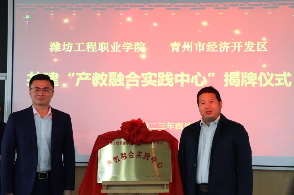 4月13日下午,我校与青州经济开发区管委会共同举办“百企进校园”产教融合暨岗位实习对接会。会上,校领导赵庆松和青州经济开发区管理委员会主任马原为“潍坊工程职业学院 青州经济开发区产教融合实践中心”揭牌,青州耐威智能科技有限公司等33家企业代表,教务处、招生就业处、机电工程学院、信息工程学院、农林科技学院、交通工程学院、航空工程学院主要负责人及师生代表300人参加活动。会议由教务处负责人主持。
